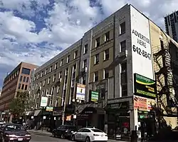 The Mark Twain Hotel is a historic residential hotel located at 111 W. Division Street in the Near North Side community area of Chicago, Illinois. Built in 1930 by developer Fred Becklenberg, the hotel was one of several residential hotels built to house the influx of labor to Chicago in the late 1920s. Most of the hotel's residents were permanent; according to 1940 census records, the majority had been at the hotel for over five years. Architect Harry Glube designed the hotel in the Art Deco style, a departure from the revival styles normally used for residential hotels. The brick building features extensive terra cotta detailing, including an elaborate cornice and stringcourse above and below the fourth floor.[2]