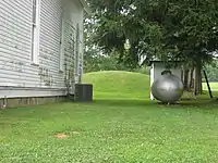 The Zaleski Methodist Church Mound is a wide, low mound in the shape of an ellipse. Measuring 60 feet (18 m) long and 53 feet (16 m) wide, it is only slightly more than 7 feet (2.1 m) tall. At the time of white settlement, it may have been taller; the presence of evidence of a fence across the top suggests that the activity of settlers may have reduced it.[1]: 1371