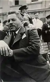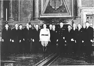 He initially accepted a position on the Fascist-established advisory council for the Province of Ljubljana, and on June 8 led a delegation to meet with Mussolini in Rome, after which he wrote Mussolini another letter expressing "complete loyalty".[6] But he resigned later that year since he saw the Italians were not interested even in any advice from the council and his opposition to the Italian authorities and their unlawful treatment of people in the Province of Ljubljana. Together with the Albert Kramer of the Liberal Party, he helped draft the London Points (Slovene: Londonske točke) in October 1941, which stated that the goals of Slovene prewar parties was the renewal of the Kingdom of Yugoslavia, and designated the Chetnik army of Draža Mihailović as the only legal force, while all others, including the Partisans, were declared treasonous.[7]