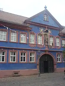 The Franck-Haus is a richly adorned townsman's house from the Baroque period, built in 1745, and is one of the town's most important sights.[3]: 49 The building master was the wine merchant and salesman Franz Valentin Franck (1702–1777). Since 1987, the house has been under the town's ownership. From 1994 to 1998 it was renovated, for which the façade's smalt-blue colour, which at the time the house was built was the most expensive colour, was reconstituted. Today the house is used for exhibitions.[4]