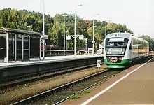 Marktredwitz station is the station of the major district town of Marktredwitz in the Bavarian administrative region of Upper Franconia. Two main lines, the Nuremberg–Cheb railway and the Weiden–Oberkotzau railway, cross at the station. It is classified by Deutsche Bahn as a category 3 station[2] and has five platform tracks.
