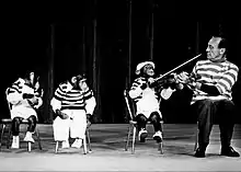 In the 1950s and early 1960s, the Marquis Chimps also appeared on other networked shows in the US, including The NBC Comedy Hour, The Jack Benny Show, and The Lucy Show.[6] They appeared in The Three Stooges' 1960 film Stop! Look! and Laugh!, and one, Marquis Jr., appeared in the Disney film Toby Tyler.[7] The troupe also featured in the 1961 US situation comedy, The Hathaways. The show aired on ABC and starred Peggy Cass and Jack Weston as suburban Los Angeles "parents" to a trio of performing chimpanzees, named Candy, Charlie, and Enoch. The show ended in 1962 after one 26-episode season.[4][6]