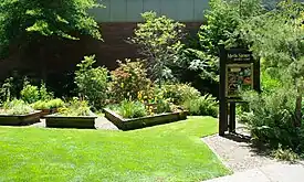 The garden was dedicated in 1988 in honor of Professor Martha Springer, a biologist at the school.[2] Elaine Joines served as the first curator of the garden.[3] The garden's long, narrow site behind the athletic building is divided into 12 smaller gardens, including a butterfly garden, herb garden, alpine rock garden, theme borders, and ethnobotany gardens.[2][4] Much of the garden contains species native to the state of Oregon. Other plants include pink varieties of Lagerstroemia.[5] The botanical garden lies along the Mill Race that splits the school's campus after leaving the Thomas Kay Woolen Mill site to the east.[2]