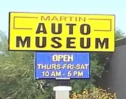 In 2005, Martin organized his vehicles into a private collection and in 2008, he founded the Martin Auto Museum. The museum was originally located in a nondescript commercial building which Martin purchased alongside Interstate 17 on a frontage road in north Phoenix. The majority of the vehicles belong to Martin while a couple belong to the museum's board members.[1][2][3][4]
