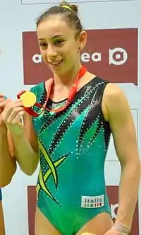 Martina Rizzelli (born March 24, 1998) is an Italian female artistic gymnast and a member of the national team. She participated in two editions of the World Championships (2014 in Nanjing, China, and 2015 in Glasgow, Scotland),[2][3] and qualified for the 2016 Summer Olympics.[1]