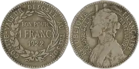 In 1897 and 1922, cupro-nickel 50 centimes and 1 franc coins were issued.