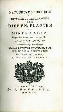 ![]() Title page of the first volume of Natuurlijke Historie (1761) | |
