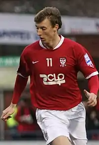 He had a trial with Stockport County of League Two during their pre-season trip to Ibiza in August 2006, but was not offered a contract.[19] He was being tracked by Hartlepool United and York City,[19] and also attracted interest from Guiseley.[21] He eventually signed for Conference National club York on 31 August for an undisclosed five-figure fee after having made four appearances and scored one goal for Frickley at that point in 2006–07.[22][23] He made his debut a day later in a 0–0 draw with Stafford Rangers after coming on as a 57th minute substitute.[24] During his first start for the team, he was substituted for goalkeeper Arran Reid in the 17th minute after Tom Evans was sent off.[25][26] He scored his first goal for York in the team's 3–2 home loss to Morecambe on 12 September.[27] A week later, he scored both York's goals in a 2–1 away victory over Woking.[28] He featured in both legs of York's play-off semi-final defeat by Morecambe 2–1 on aggregate and finished 2006–07 with 45 appearances and eight goals,[29] after which the club exercised their option to extend his contract for another season.[30]