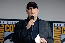 In July 2019, Marvel Studios held a panel at San Diego Comic-Con where Feige announced the full Phase Four slate. This included five films to be released—Black Widow, Eternals, Shang-Chi and the Legend of the Ten Rings, Doctor Strange in the Multiverse of Madness, and Thor: Love and Thunder—as well as five event series to be released on Disney+—The Falcon and the Winter Soldier, WandaVision, Loki, What If...?, and Hawkeye.[12] He confirmed that there would be connections between the films and series,[13] with the events of WandaVision directly setting up Doctor Strange in the Multiverse of Madness and Loki tying into it.[14][15] Feige stated that these ten projects were the full Phase Four slate at that point, despite Marvel already developing further projects at that time,[16] such as the long-in-development Guardians of the Galaxy Vol. 3,[17] sequels to Black Panther (2018) and Captain Marvel (2019),[18][19] and a film based on the Fantastic Four.[20] Feige also noted that the studio had films scheduled to be released after 2021 which would not be officially announced or given release dates at that time.[21] A month later at D23, Feige announced three more Disney+ series that would be released as part of the Phase Four slate: Ms. Marvel, Moon Knight,[22] and She-Hulk: Attorney at Law,[22][23] as well as the Black Panther sequel with the placeholder title Black Panther II and a May 6, 2022, release.[24] In September, Disney and Sony Pictures announced that Marvel Studios and Feige would return to produce Spider-Man: No Way Home, set for release during this phase.[25][26]
