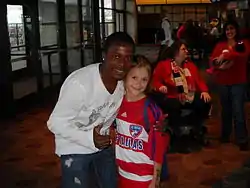 Chávez (left) with a young fan while at FC Dallas