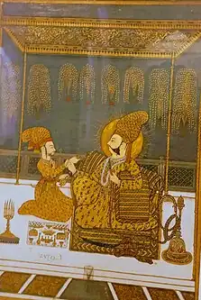 Marwar painting of Jodhpur is an important part of the cultural heritage of Rajasthan. It is an expression of the region's rich history, mythology, and folklore, and reflects the artistic sensibilities of its people. The paintings are highly valued by collectors and art enthusiasts and are an important source of income for the artists and their families. Artists trained at the courts of the Mughal emperors introduced the Jodhpur artists to the classical concepts of portraiture and composition. The sophisticated techniques of painting created a unique and lively school of painting when combined with local style, vibrant colours, and regional subjects. Today, Marwar painting of Jodhpur continues to thrive, with artists using traditional techniques and materials to create beautiful works of art that are appreciated by people all over the world.[10]