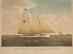 ![]() New York pilot boat Mary A. Williams, No. 19, built by Edward F. Williams. | |