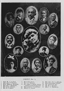 Small worked alongside her husband in the A.M.E. Zion Church, including as a missionary in Africa, until his death in 1905.[8] In the United States, they conducted parish work together in Washington, D.C., North Carolina, Connecticut, and other states.[5] She also the first woman to be ordained an elder, the highest holy order of the time, when her nomination was approved on May 23, 1898, at the Philadelphia and Baltimore connections of the Church.[9] She was nominated after passing an examination, and although a number of ministers protested and requested a hearing, she was elected to the position of elder by a vote of 24 to 13.[9] The A.M.E. Zion Church was the first to open this high-level position to women.[2] As an elder, Small had the same rights as a minister, including authority over male members of the church.[9]
