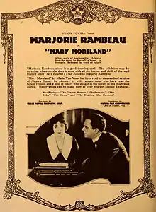 Mary Moreland is a 1917 American silent drama film starring stage actress Marjorie Rambeau that was released through Mutual Film. It is a lost film.[1][2]