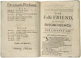{{cite book}}:|last=has generic name (help) - ↑ Clark, Constance (1986). Three Augustan Women Playwrights. New York: Peter Lang. pp. 183. ISBN 0-8204-0309-1.