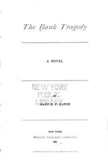 Mary R. P. Hatch (née, Platt; pen name Mabel Percy; June 19, 1848 – November 28, 1935) was an American author from New Hampshire. She contributed stories to the Transcript, Mountaineer, Fireside Companion, Chicago Ledger, Frank Leslie's Illustrated Newspaper, Springfield Republican, Granite Monthly, The Writer, and several magazines including the Portland Transcript, The Saturday Evening Post, Peterson's Magazine, as well as other periodicals. Her novels included The Strange Disappearance of Eugene Comstocks, The Bank Tragedy: A Novel, and The Missing Man, among others.