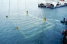 The Mary Rose Trust traces its origins back to the Mary Rose Committee, founded in 1968 with the intent "to find, excavate, raise and preserve for all time such remains of the ship Mary Rose as may be of historical or archaeological interest".[1] The wrecksite was scouted and surveyed with side scan sonar in 1967-68, revealing a hidden feature, the first loose timber was located in 1970 and the buried wreck of the Mary Rose finally located on 5 May 1971. Throughout the 1970s volunteer divers and archaeologists surveyed the ship and conducted some limited excavations.[2]
