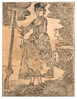 1. Neal Salisbury points out in his introduction to Rowlandson's work (Bedford Books, 1997) that this woodcut was reused from The Life and Adventures of a Female Soldier, 1762, neglecting the fact that her narrative never mentions her using a gun. Salisbury also exhibits another woodcut for a 1773 edition showing her with a gun.