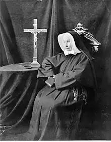 She was born Catharine Mehegan in Ireland in 1825, one of the ten children of Patrick Mehegan and Joanna Miles. Along with a sister, Margaret, she emigrated to the United States in 1842, settling in New York City.[1] In 1846 she joined the Sisters of Charity there, who had been founded by Mother (now Saint) Elizabeth Ann Bayley Seton in Maryland. A native of New York, in 1817 Seton sent sisters from the motherhouse in Emmitsburg, Maryland, to her native city. Taking the name by which she is now known, Catharine Mehegan joined the Sisters of Charity of New York and took her annual religious vows for the first time on 25 March 1847.