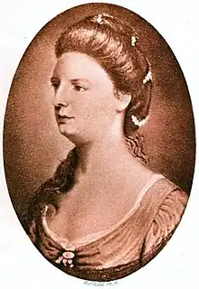 She was the fourth daughter of Penelope Wheeler and Thomas Kynnersley, the owners of Loxley Hall.[1][2] Her birth date is unknown but she married in 1775 at St Marylebone Church and at the French Embassy in London. Her husband was Auguste Louis Frederick de Bode, a baron in the nobility of the Holy Roman Empire. He had some notable ancestors but he was not rich. He was born in Germany and worked as a soldier in the Royal Deux-Ponts Regiment in the service of King Louis XVI of France. She had met him while in Flanders.[3] He was a Catholic and she a member of the Church of England.[2]