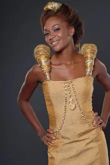 Maryna Asauliuk is the creator of the most famous Ukrainian haute couture dress, made from thousands of ears of wheat. In this dress Hanna Poslavska, third vice-Miss Universe, represented Ukraine on the Miss Universe 2010 contest.[1]