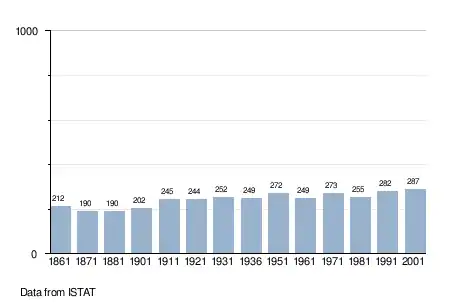 - ↑ "Popolazione Residente al 1° Gennaio 2018". Italian National Institute of Statistics. Retrieved 16 March 2019.