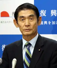 Masahiro Imamura, who holds rather radical positions about nuclear issues, was until April 26, 2017 the minister in charge of coping with the aftermath of the Fukushima nuclear power plant disaster. He was forced to step down over a remark that he had made the previous day suggesting that it had been better that the 2011 earthquake and tsunami had hit the Tohoku region than the Tokyo region. He has been replaced by Masayoshi Yoshino who had been chairman of the special House of Representatives committee on Tohoku reconstruction.[6]