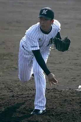 Masaki Minami (南 昌輝, Minami Masaki) is a Japanese professional baseball pitcher. He was born on January 18, 1989. He is currently playing for the Chiba Lotte Marines of the NPB.[1]