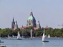 ![]() Masch Lake as seen from the New Town Hall observation platform, about 500 metres (1,600 ft) to its north | |