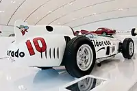 The Maserati 420M/58 Eldorado was a single-seater manufactured by Maserati in 1958. It was a one-off race car purpose-built for the second edition of the 500 Miles of Monza. It was the first single-seater in Europe to be sponsored by a brand not attached to an automobile industry. The internal Maserati classification was the Tipo 4, behind the 250F variants, and also referred to as the 420/M/58 for 4.2-litre displacement, Monoposto or a single-seater in Italian and 1958 year, or simply as the "Eldorado".[1]