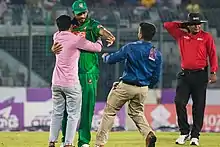 Mashrafe was ranked as one of the most famous athletes in the world on ESPN World Fame 100 in 2019.[18][19] According to Antiguan first-class cricketer Andy Roberts, Mashrafe is the most talented cricketer in Bangladesh.[20] He became only the fifth bowler in history to take 100 ODI wickets as a captain.[21][22] Mashrafe is also the first pace bowler in Bangladesh who bowled a delivery clocking over 147 km/h, which he did during a Test against New Zealand at Hamilton in 2001.[23][24] Mashrafe's career has been hampered by fifteen injuries as he has undergone a total of ten operations on his knees and ankles.[25][26] On 6 March 2020, Mashrafe, at the age of 37, announced his retirement from national team captaincy by playing the last match of the ODI series against Zimbabwe.[27]