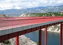 Maslenica Bridge (Croatian: Most Maslenica,[1] but also known as Croatian: Maslenički most) is a 377.6 m (1,239 ft) long reinforced concrete arch bridge spanning the Novsko Ždrilo strait of the Adriatic Sea, north of Zadar, Croatia, carrying the Croatian A1 motorway. It is located between the Rovanjske and Posedarje interchanges of the A1 motorway.[2]