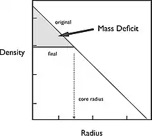 The mass deficit is defined[7] as the amount of mass that was removed in creating the core. Mathematically, the mass deficit is defined as