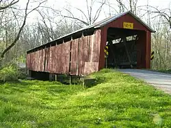 The Charleton Mill Road Covered Bridge spans Massies Creek north of Wilberforce