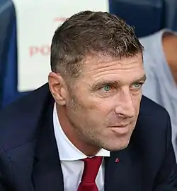 Massimo Carrera (Italian pronunciation: [ˈmassimo karˈrɛːra]; born 22 April 1964) is an Italian professional football manager and former player, who was most recently the manager of clubs Spartak Moscow and later AEK Athens, before leaving continental football and joining local club Bari in Serie C. Nicknamed La Bandera, he played as a defender for various European clubs, including Juventus, which he later managed, and the Italy national team.