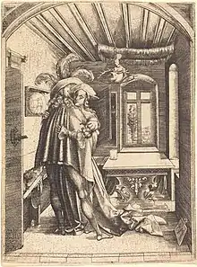 Master MZ was an engraver active in south Germany around 1500.[1] He signed his 22 engravings with his monogram "MZ", and six are dated, all 1500, 1501 or 1503. He worked in Munich in Bavaria, and in 1500 seems to have been connected to the court of Albert IV, Duke of Bavaria. There are complicated but inconclusive arguments for and against identifying him with a goldsmith called Matthäus Zaisinger, a painter known as Master MS, and other figures.