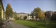 Bucerius Law School is located in the city center, near Hamburg's trade exhibition center and the park Planten un Blomen. Housed in a historic building that used to serve as the horticulture and botany buildings for the University of Hamburg, Bucerius features a full service Mensa, or cafeteria, offering a variety of hot meals daily. A new library building with a capacity of 450 workspaces was added to the eastern side of the main building in 2007. The library comprises 76,000 books and 2,355 periodicals in printed and electronic form; it is not open to the public. There are several computer labs, a napping room, a theater and an on-campus and bilingual (German/English) kindergarten. Important events such as major soccer-matches can be watched on a full screen in the lecture hall. There is a gym on-campus which students are free to use once an initial registration fee of 50 Euro has been paid. Showers are available both inside the gym and in the main building. On its top floor, Bucerius Law School has 15 separate rooms for students who wish to study with their friends in small groups.