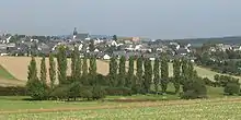 • Saint Lucy’s Catholic Parish Church (Pfarrkirche St. Lucia), Kirchstraße 5 – Romanesque (?) west tower, tower cupola, 1928; new building, 1965; outside, a basalt grave cross, marked 1801
