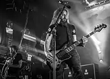 ![]() Mastodon performing live in 2012. From left to right: Brann Dailor, Brent Hinds, Troy Sanders and Bill Kelliher. | |