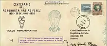 Coprefil, the Cuban official agency responsible for design, production and sales of stamps, celebrated Matías Pérez 100th anniversary flight with a First Day Edition, on 29 June 1956, and honored him again as one of Cuba's first pilots with two stamps, valued at three and 13 cents respectively, showing Plaza de Marte, the location from where he departed, and the Chorrera Fort, where he landed after his first successful trip in 1856.