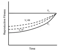 - V1: reproductive success obtained when only one parent cares for the young (for the purpose of simplicity, model assumes that V1 is the same for both male-only and female-only care)