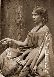 Matilda Agnes Heron was born in County Londonderry, Ireland on 1 December 1830[1] to John Heron and Mary Heron (née Laughlin). Some details of Matilda Heron's past are unsure, but many records state that her family owned a small farm in Ireland before emigrating to the United States in 1842. Matilda was around twelve at the time. Her family moved to Philadelphia, Pennsylvania where her father worked as a lumber merchant. Matilda was the youngest of five children. Her siblings include two sisters named Fanny and Agnes and a brother named Alexander. Her brother, Alexander Heron Jr., was a successful shipper.[2] In some sources, her sisters, Fanny and Agnes, are reported to have been excellent singers. It is possible that Matilda and her sisters received stage training in Ireland, but this is not confirmed.[3] In Philadelphia, Matilda's parents sent her to a private academy that was across from the Walnut Street Theatre. Being so close to the theatre sparked Matilda's interest in acting, and she began to train for the stage under elocution teacher, Peter Richings.[1]