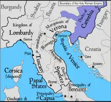 Matilda died sometime after Easter 1030 (when she was at the imperial court) and before January 1034, when Emperor Conrad II issued a diploma at the intervention of his wife Gisela, commemorating her death.[15] She is often said to have died on 29 July 1032. She was buried in Worms Cathedral. After Matilda's death, her young daughters (Beatrice and Sophie) from her second marriage to Frederick were adopted by her sister, Empress Gisela.[16]