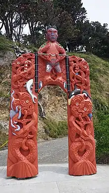 A waharoa (carved gateway) named Tane Te Waiora was unveiled next to the wharf at the entrance to the island in 2017.[80]