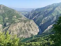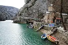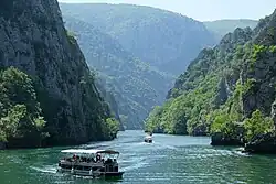 Matka (Macedonian: Матка, meaning womb,[1] Albanian: Matkë, Kanioni i Matkës) is a canyon located west of central Skopje, North Macedonia. Covering roughly 5,000 hectares,[2] Matka is one of the most popular outdoor destinations in North Macedonia and is home to several medieval monasteries. The Matka Lake within the Matka Canyon is the oldest artificial lake in the country.[3]