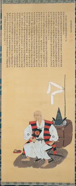 Matsui Okinaga (松井 興長, 1582 – July 24, 1661) also known as Nagaoka Sado (長岡 佐渡) was a Japanese samurai who served the Hosokawa clan, during the early Edo period (17th century). It was Nagaoka Sado himself who had protected Miyamoto Musashi as for him to be able to duel against the famous Sasaki Kojirō in 1612. At one time during the year of 1638, Musashi had met Sado. Sado had known at the time that Musashi was living in the house of Ogasawara, but he had learned that it was Musashi's son, Miyamoto Iori who had been under the service of the Ogasawara, and that Musashi was there as a guest. Sado had also learned that Musashi had no true intention of entering under the lord's service, and that he was only taking part in that battle (Ogasawara establishment in northern Kyūshū) as a staff in order to be an advisor to his son. After Sado had then returned to the province of Higo, he began planning the steps to get Musashi into the service of his fief, since he had already known that Lord Hosokawa Tadatoshi was interested in him. However, Tadatoshi had been previously schooled in the wisdom of the feudal system, in which he ordered for Musashi to act prudently, because Musashi's current situation as he had known, was residing within the house of Ogasawara, in relation to the fact that it would be a major mistake to show discourtesy.
