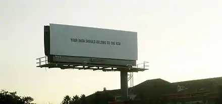 {{cite web}}: CS1 maint: numeric names: authors list (link) - ↑ Siner, Emily (8 October 2013). "Solved: The Minds Behind The 'NSA' Billboard Reveal Themselves". NPR.org. Retrieved 19 January 2016.