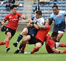 Matthew McGahan (born 21 April 1993) is an Australian born rugby union player of Irish descent. His father played professional rugby league in New Zealand. Matt plays in the fly-half (and occasionally inside centre) position for The Ricoh Black Rams.[1] and formerly in the Mitre 10 Cup for North Harbour and Australia's National Rugby League (NRL) rugby league club the Melbourne Storm.[2] He formerly played for Yamaha Jubilo in the Japanese top League.