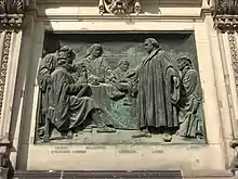 ![]() Relief from the Berlin Cathedral depicting Matthäus Aurogallus, Martin Luther, and Phillip Melanchthon | |