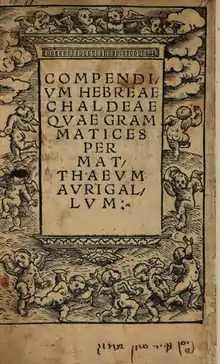 Matthäus Aurogallus, German: Matthäus Goldhahn (1490 – 10 November 1543) was a Bohemian linguist. Born in Chomutov (then Komotau), Bohemia, as Matthäus Goldhahn, (he latinized his name Aurogallus in the fashion of renaissance humanists) Aurogallus served as professor of Hebrew at the University of Wittenberg and was a colleague of Philip Melanchthon and Martin Luther. He assisted Luther in the revision of the reformer's translation of the Old Testament[1] and made valuable contributions to the academic study of Hebrew.[2]